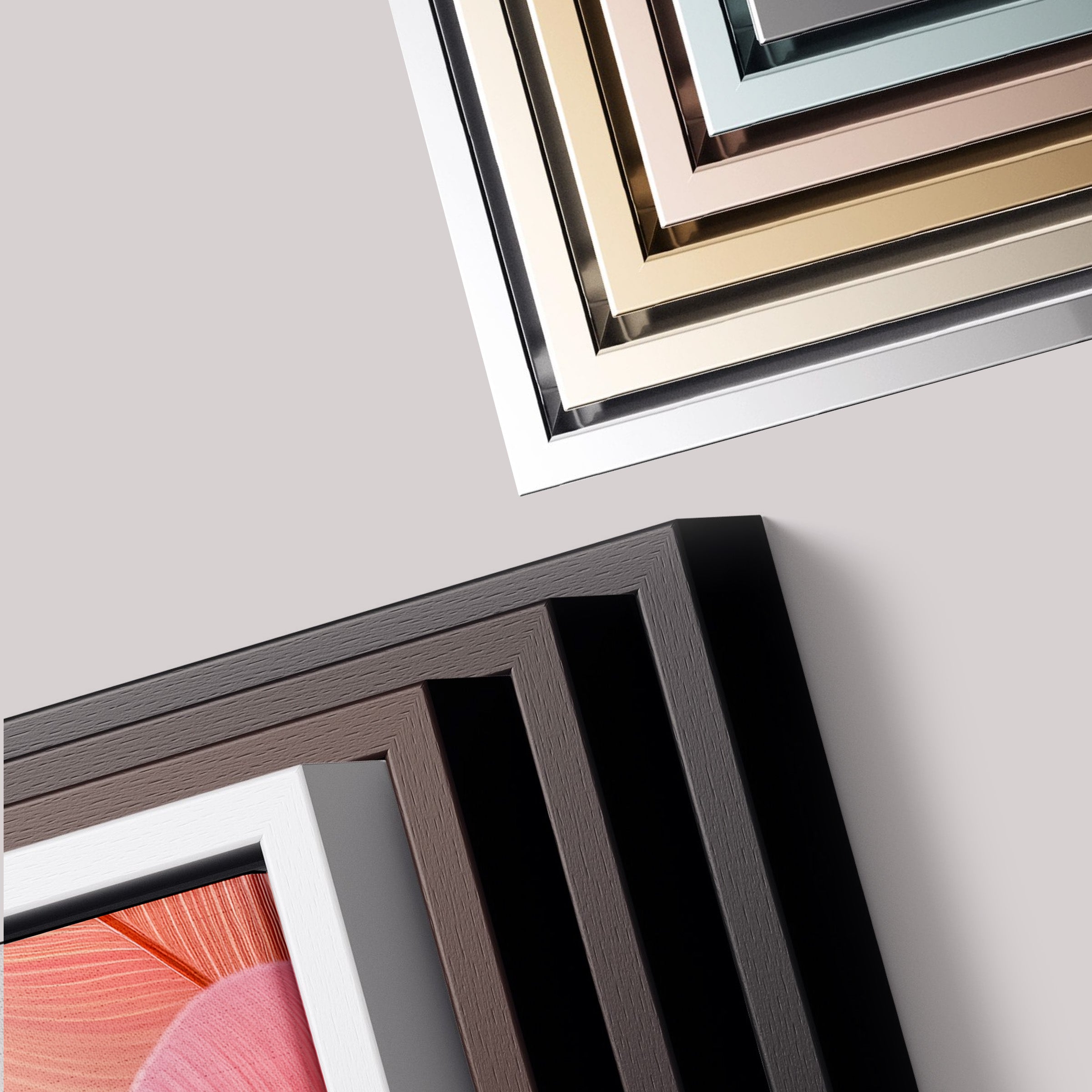 Frames with a premium finish that enhance your art. Made with high-quality materials, they combine elegance, durability, and sophistication.