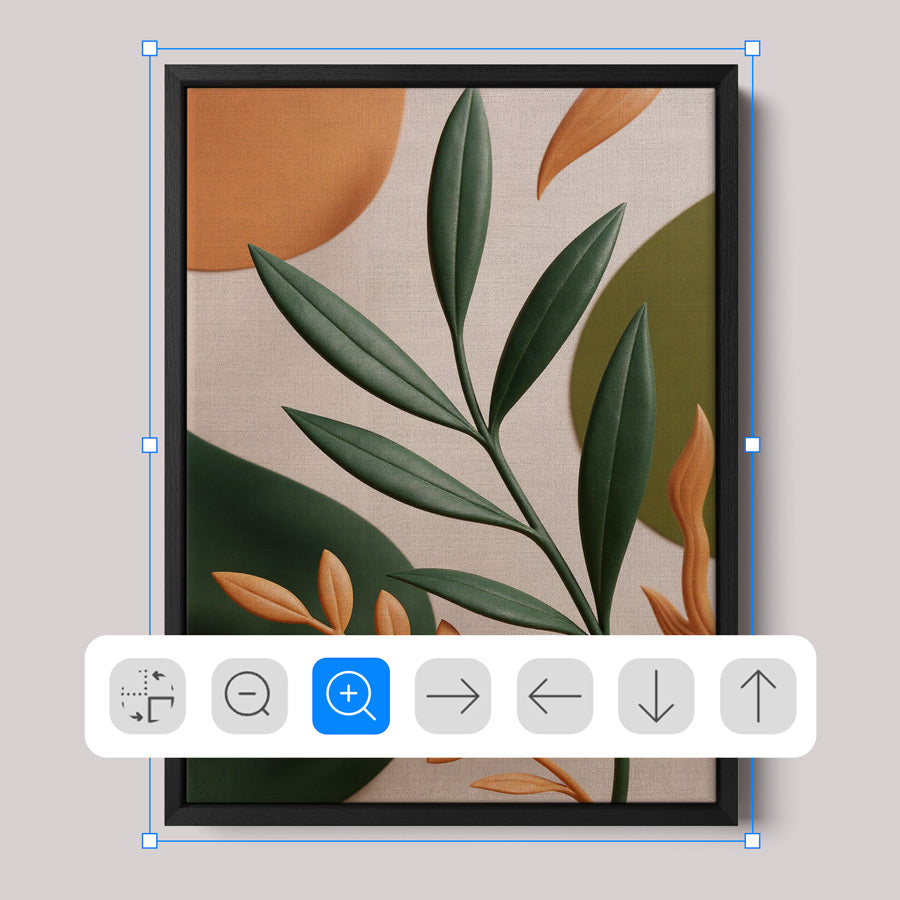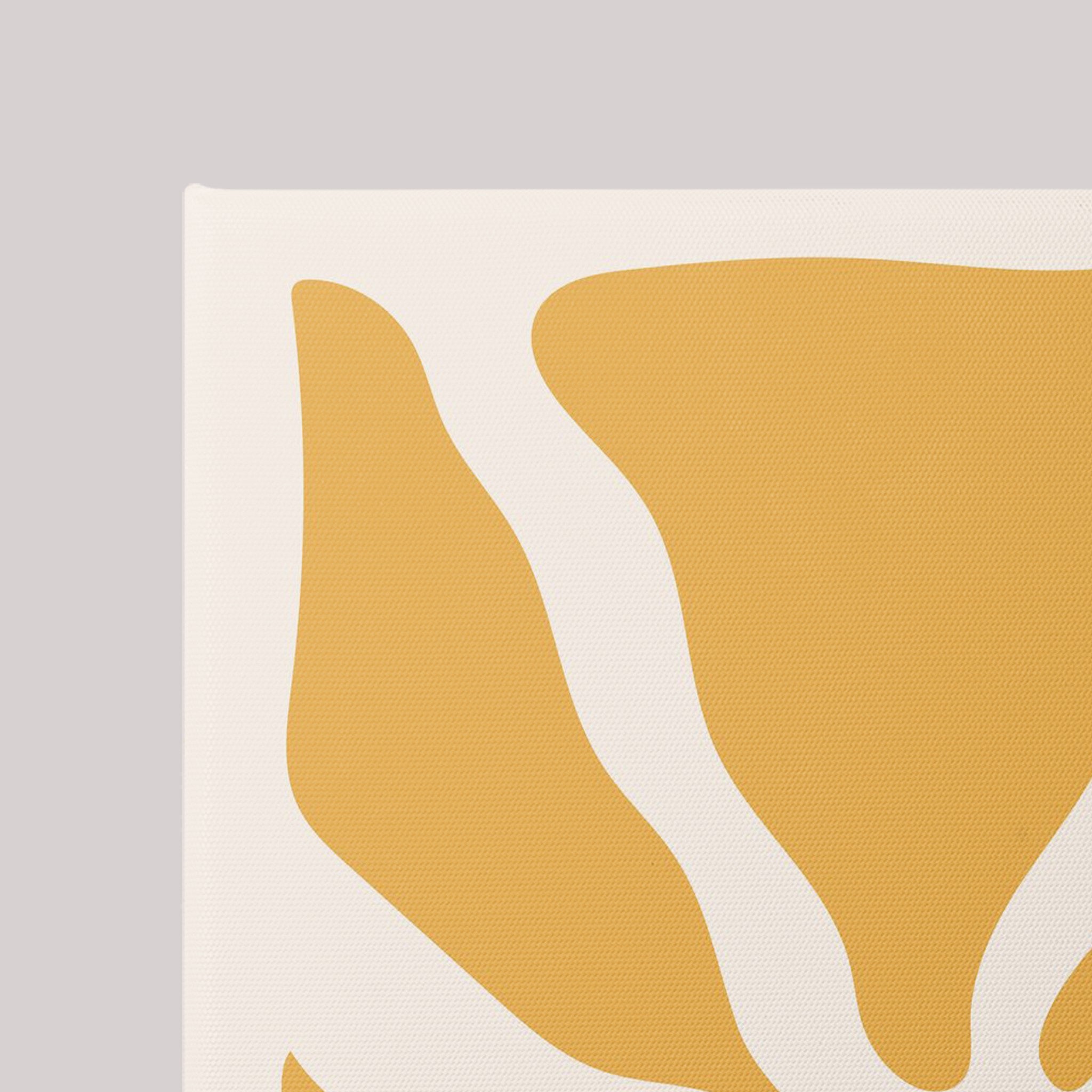 100% cotton canvas stretched on a frame, wrapped in a channel frame (0.7 cm front × 4.5 cm depth). 0.75 cm space between the canvas and frame, creating a floating effect. No glass.