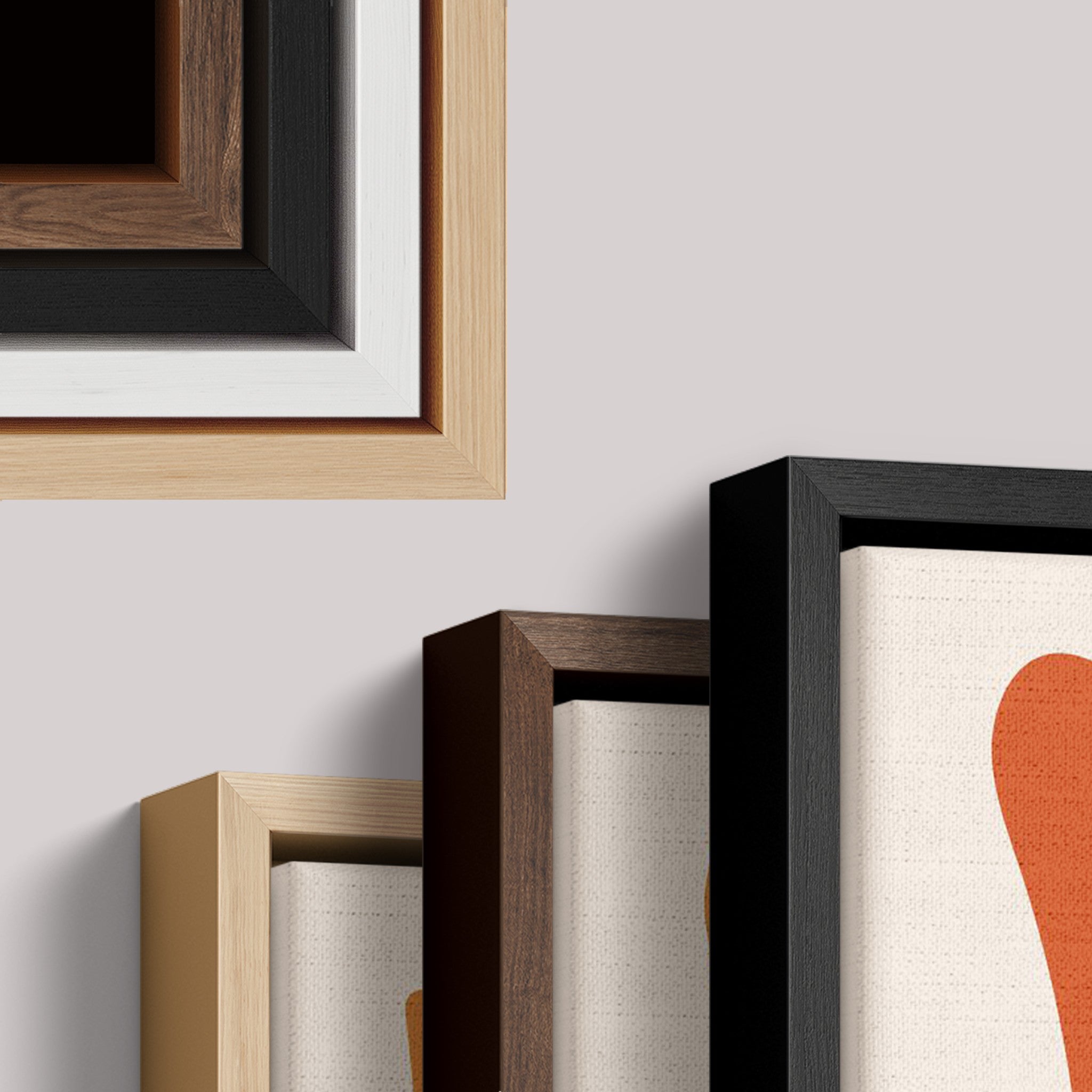 Our paintings are available with various frames, such as Floating, Box and Fillet, all made from sustainable wood with a premium finish, ensuring elegance and durability.