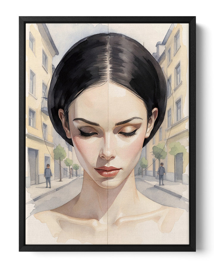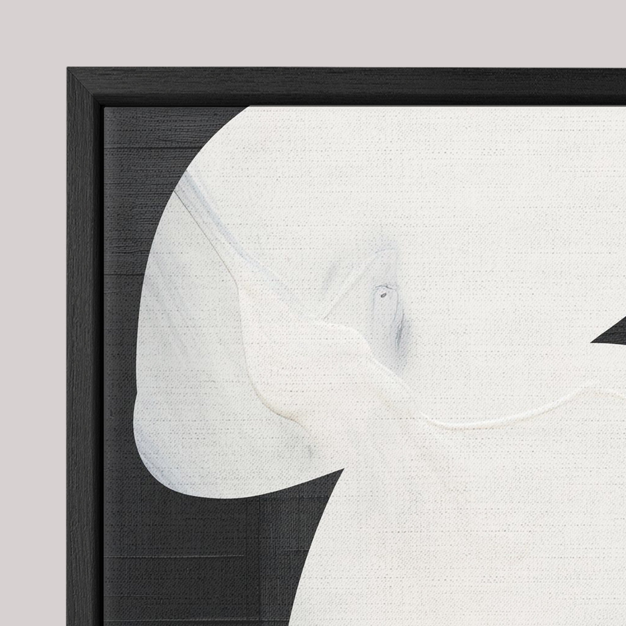 100% cotton canvas stretched on a frame, wrapped in a channel frame (0.7 cm front × 4.5 cm depth). 0.75 cm space between the canvas and frame, creating a floating effect. No glass.