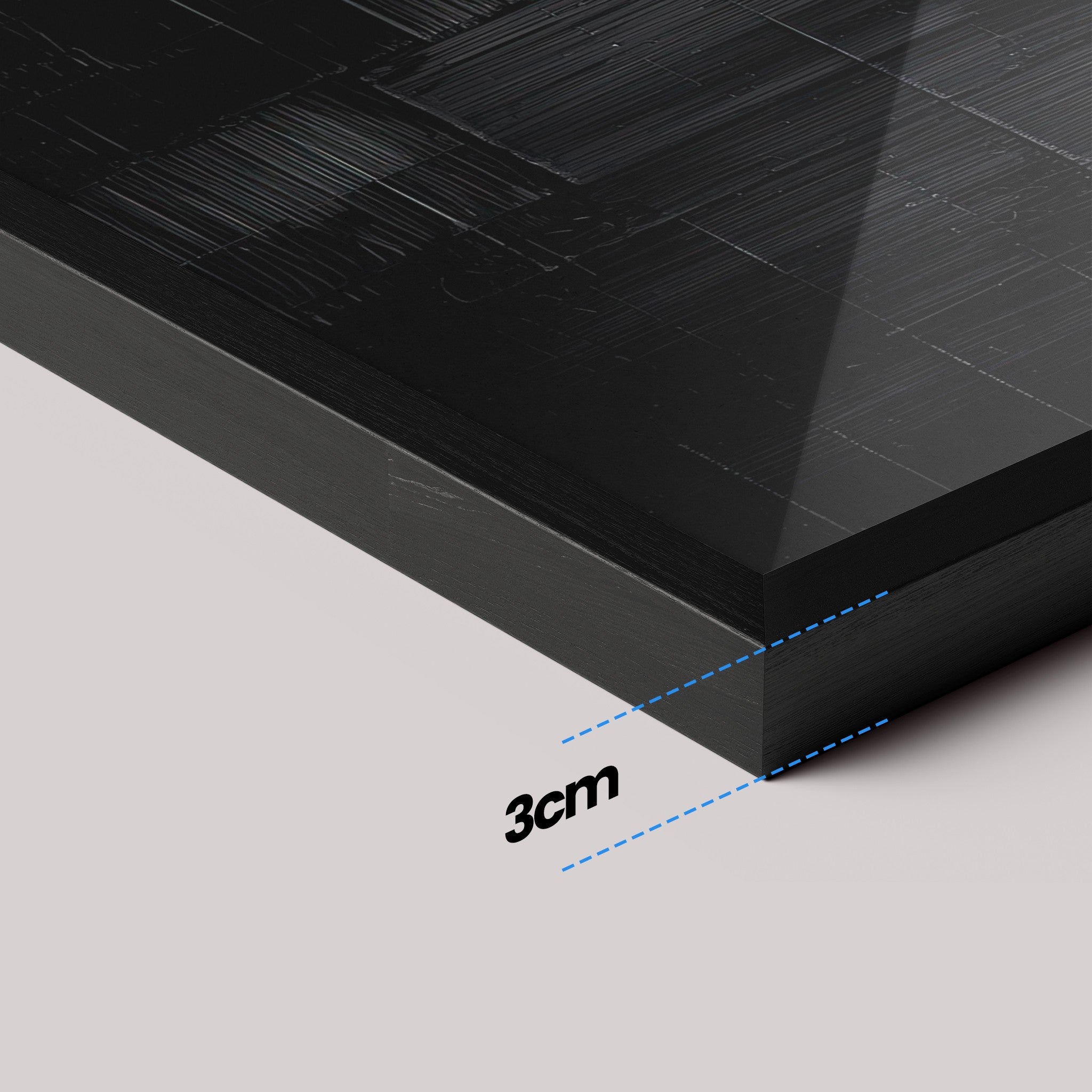 Sturdy frame (2 cm × 3 cm), same printing standard and finish. With or without glass. Ready to use.