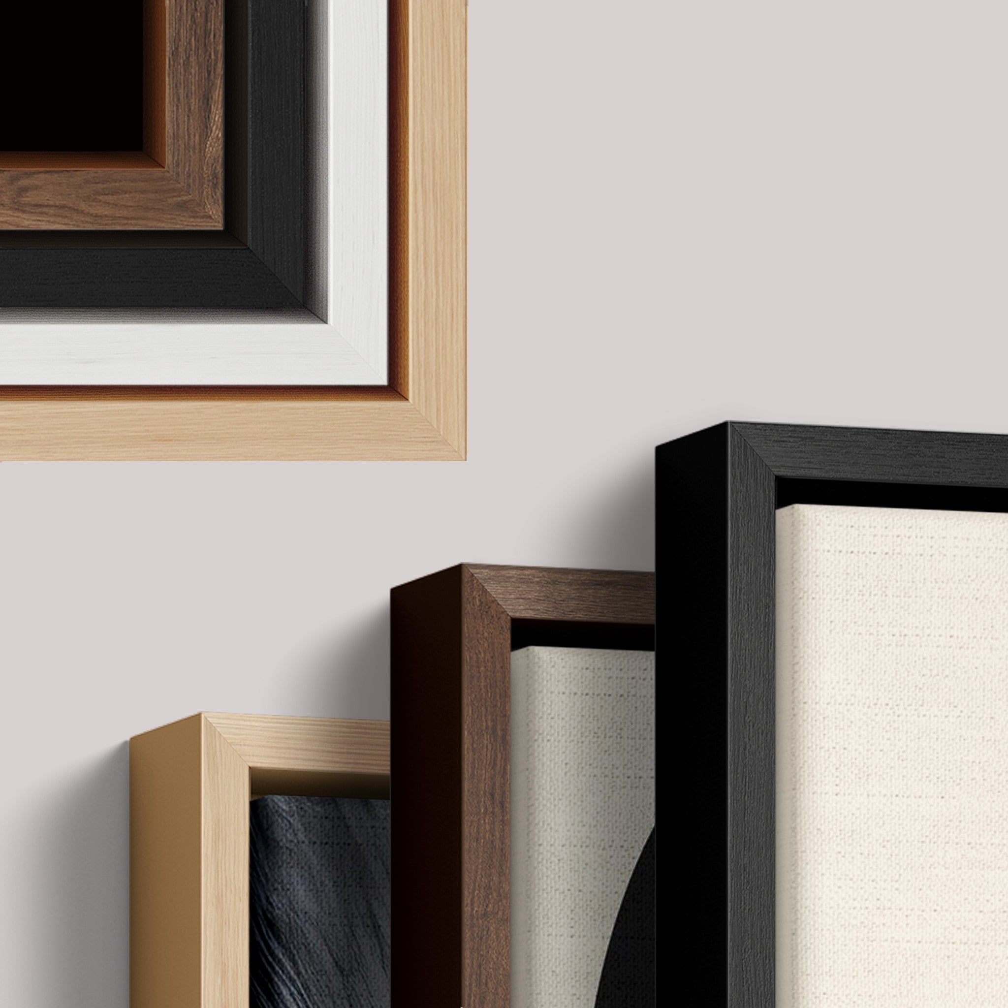 Choose from floating, box, fillet, or canvas frames. All offer a premium finish using sustainable wood, combining elegance and durability.