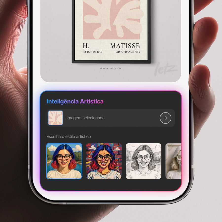 Artistic applications are modified on the submitted image, transforming the work into a new exclusive creation by Matisse with Artificial Intelligence .