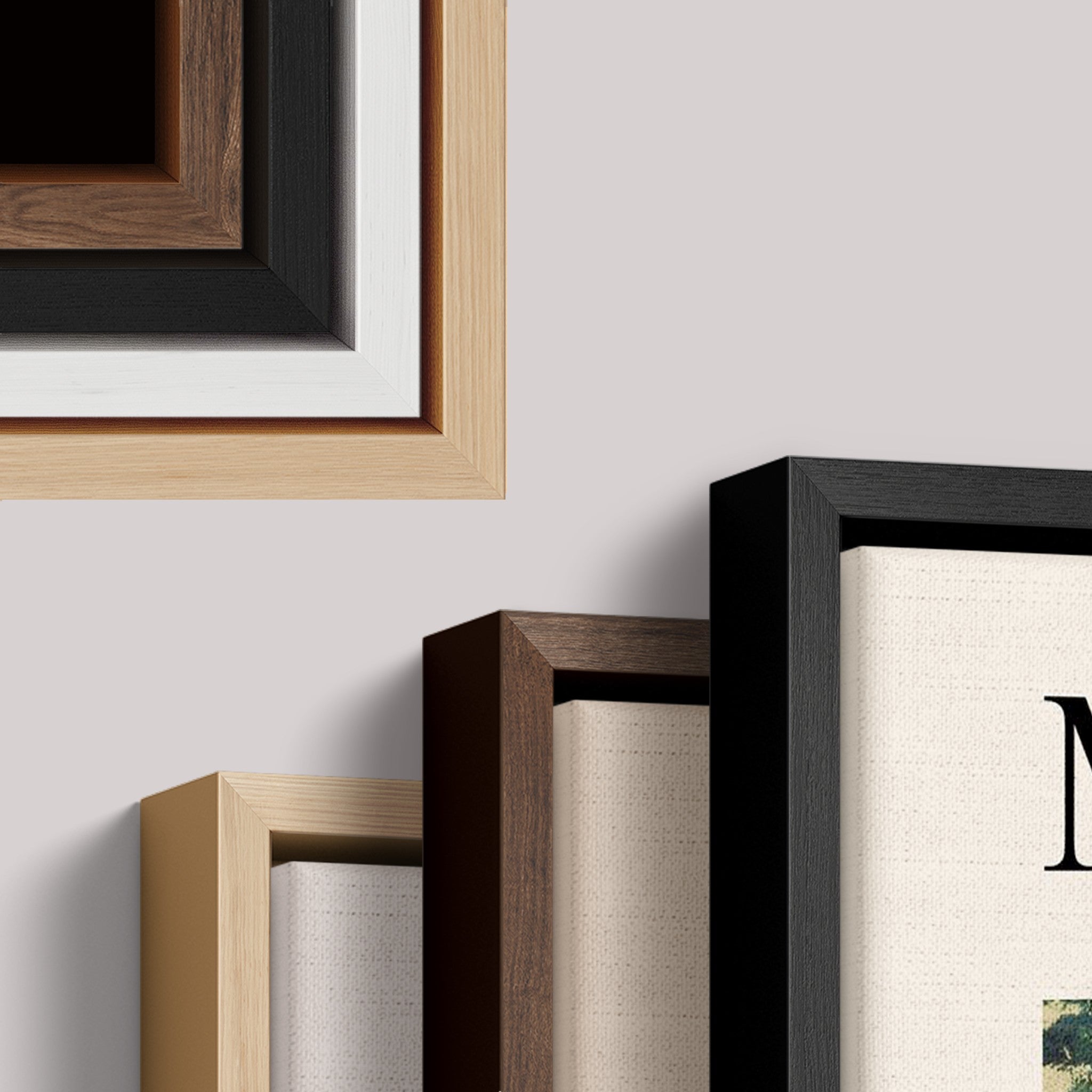 Discover options like Floating Frame, Box, Fillet or Canvas on Canvas, all made from eco-friendly wood with a premium finish that highlights your decorative art.