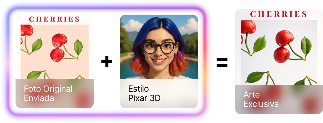 The chosen artistic style is applied to the desired image. Artistic Intelligence creates unique versions, highlighting vibrant fruits in your decor.