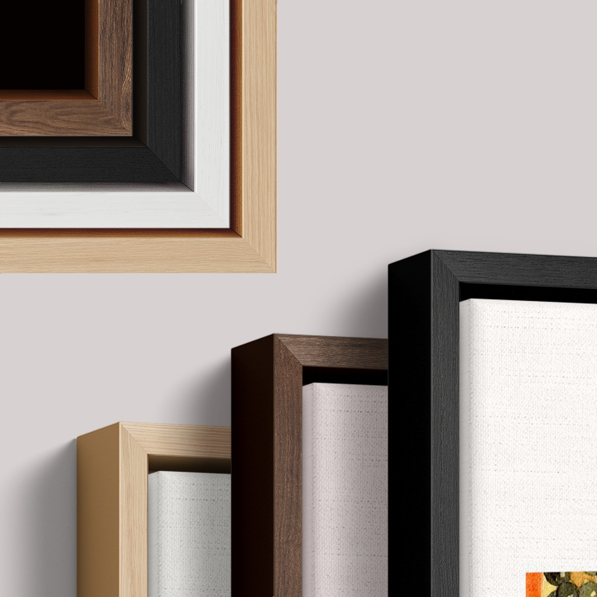 Choose from floating, box, fillet, or canvas frames. All with a premium finish in eco-friendly wood and contemporary design.